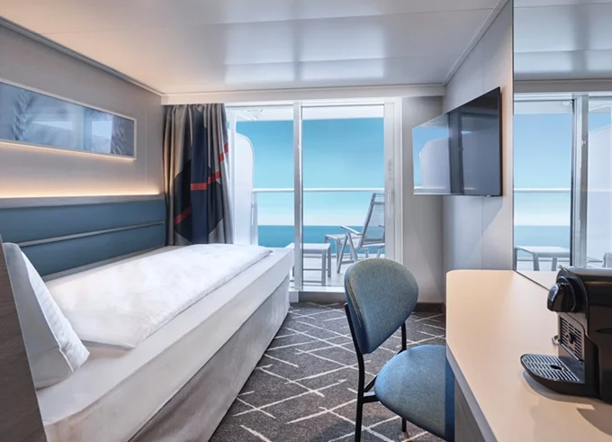 | SUWO - Weitblick Suite 45 m² + balkón 12 m² s hojdacou sieťou. Oddelená spálňa a obývacia časť, šatník. 14. paluba. Max 4 osoby. Výhody Suite. | 6 998 € 3 499 € za osobu | ||